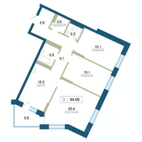 Планировка продумана до мелочей: три отдельные комнаты, кухня с выходом на балкон, два сан.узла, в коридоре глубокая ниша под гардеробную. При желании, можно легко превратить планировку в евро-трёхкомнатную с двумя спальнями и просторной кухней гостиной более 30 кв.м.