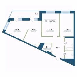 Планировка продумана до мелочей: три отдельные комнаты, кухня с выходом на балкон, два сан.узла, в коридоре глубокая ниша под гардеробную. При желании, можно легко превратить планировку в евро-трёхкомнатную с двумя спальнями и просторной кухней гостиной более 30 кв.м.