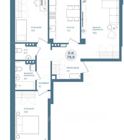 Продаётся 3-комнатная квартира в строящемся доме (Дом 13), срок сдачи: II-кв. 2026, общей площадью 74.07 кв.м., на 17 этаже. Расположение, транспортная доступность