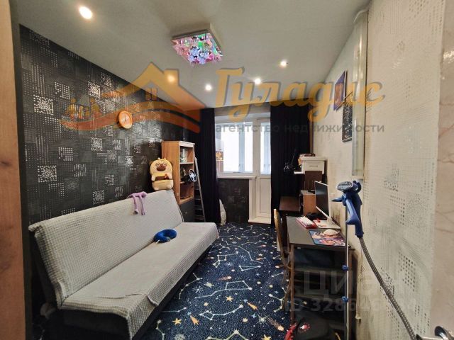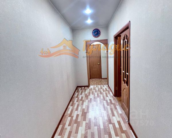 Кухня - 12 кв.м., зал - 19 кв.м., спальня - 12 кв.м., детская - 12 кв.м., длинный коридор имеет свою встроенную систему хранения. В квартире косметический ремонт, пол линолеум (на бетонной стяжке). Установлены счетчики на воду и на свет, медное отопление, квартира очень теплая. Благополучные соседи.