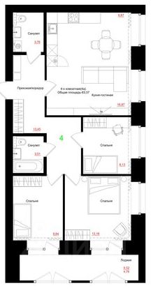 Продаётся 4-комнатная квартира в сданном доме (Дом 2, 3 этап), срок сдачи: IV-кв. 2024, общей площадью 93.19 кв.м., на 6 этаже. Расположение, транспортная доступность