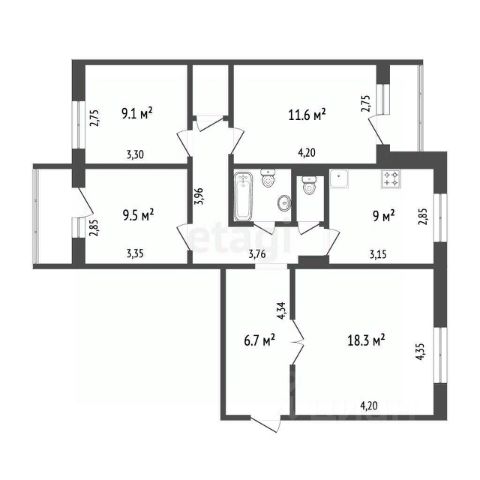 Продаётся 4-комнатная квартира в сданном доме (Дом 2, 3 этап), срок сдачи: IV-кв. 2024, общей площадью 93.19 кв.м., на 6 этаже. Расположение, транспортная доступность