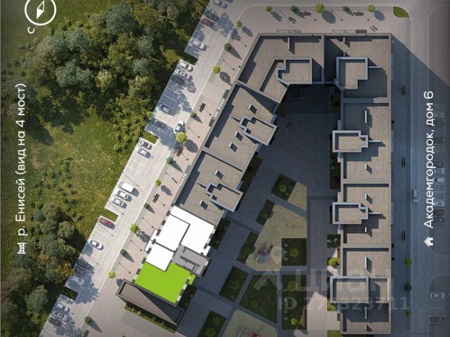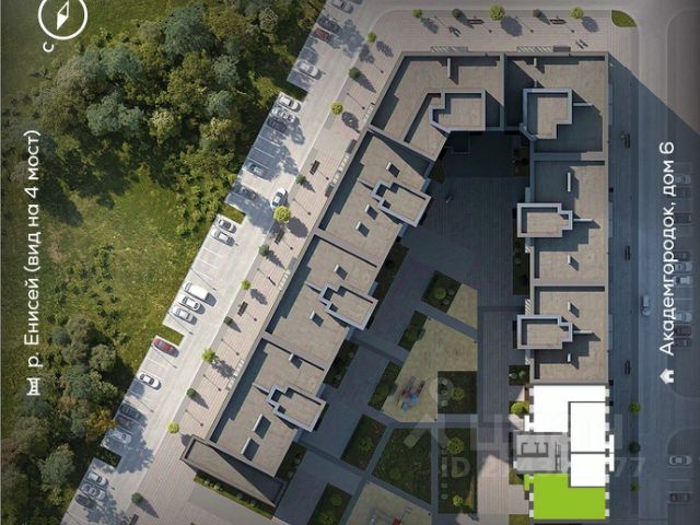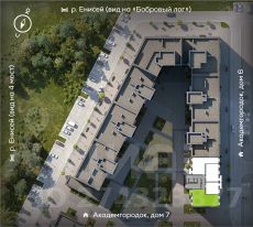Комплекс расположен в нескольких сотнях метрах от реки Енисей (живописные виды на которую открываются из окон многих зданий комплекса), поблизости от зеленых зон острова Татышев, недалеко от парка 400-летия Красноярска и парка "Сады мечты".