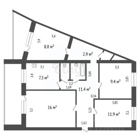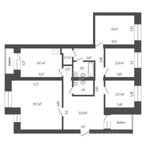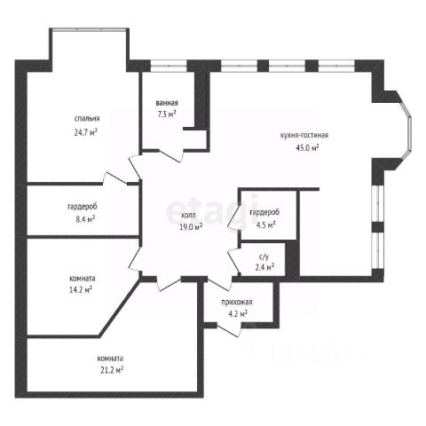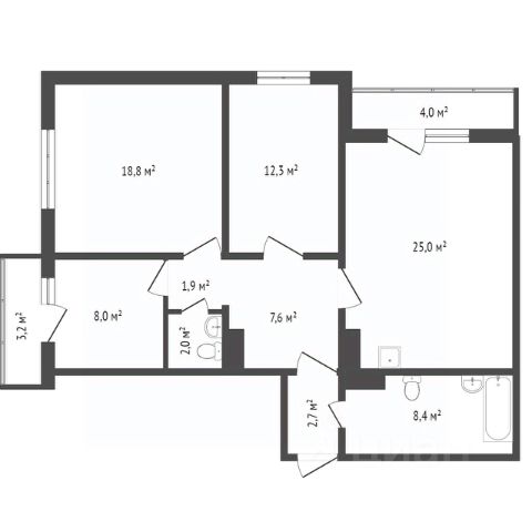 Квартира общей площадью 108.2 кв.м pacпoложена нa 8 этаже 9-этажного киpпичногo дoма 2024 года постройки от строительной группы СМ.СИТИ.