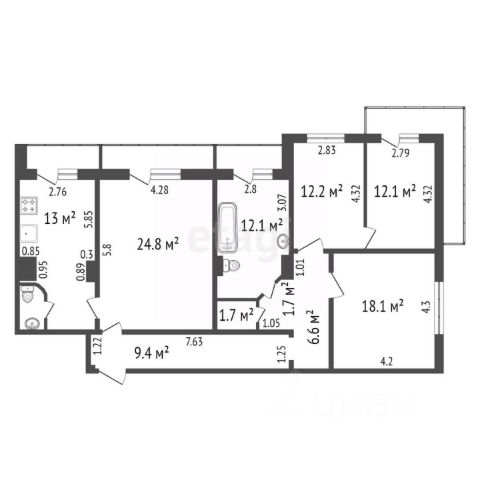 Квартира в отделке "белый куб" полностью готова к воплощению ваших фантазий. Планировка классическая: все четыре комнаты раздельные, просторная кухня 12.2 кв. м, большой коридор, раздельный санузел, два балкона на разные стороны. Внутри квартиры нет несущих стен, а значит вы сможете изменить планировку на свой вкус. Выровнены стены и потолки, чистовой пол, электроподготовка и базовая сантехника.