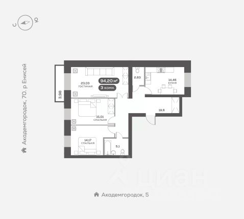 Академгородок, Дом 3, квартира 323. Новый Академгородок - сити-район из восьми кирпичных домов-кварталов на берегу Енисея. Близость природы, закрытые дворы и свой собственный Академ-парк. Для тех, кто хочет жить рядом с городом, но дышать чистым воздухом. Квартира сдается в отделке "белый куб". Выровнены и оштукатурены стены, бетонная стяжка на полу, натяжной потолок, полная электроподготовка и установлена базовая сантехника. Вы получаете ключи от квартиры, подготовленной к воплощению ваших фантазий.