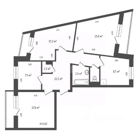• ✅ Объект наибольшей площади: 85,5 м²