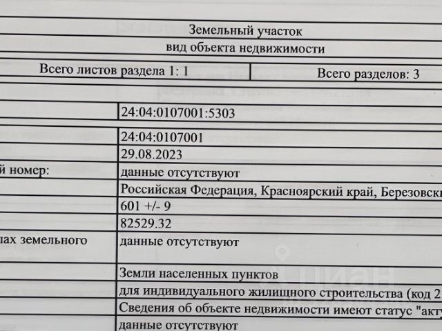 Продам земельный участок ИЖС, вокруг идет активная застройка Расположение - жилой район "Кузнецовское плато" кадастровый номер 24:50:0600203:1366, можете посмотреть по Публичной кадастровой карте расположение и проехать посмотреть, точный адрес на скриншоте Публичной кадастровой палаты Подходит под любой расчет, включая льготные ипотеки Категория земель - Земли населенных пунктов Вид разрешенного использования - для индивидуального жилищного строительства Материнский сертификат при покупке не использовался Один взрослый собственник