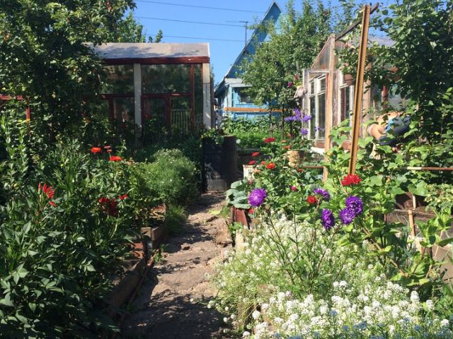 Здесь, на этой даче, сложилось экологичное пространство для отдыха и разнообразной физической активности, благотворно влияющей на здоровье. Дышится на удивление легко в окружении двух огромных сосен, берёз и плодово-ягодных культур (вишня разных сортов, ранетка "Воспитанница", крыжовник, ирга, облепиха, жимолость, слива, рябина и калина, а по периметру участка - малинник).