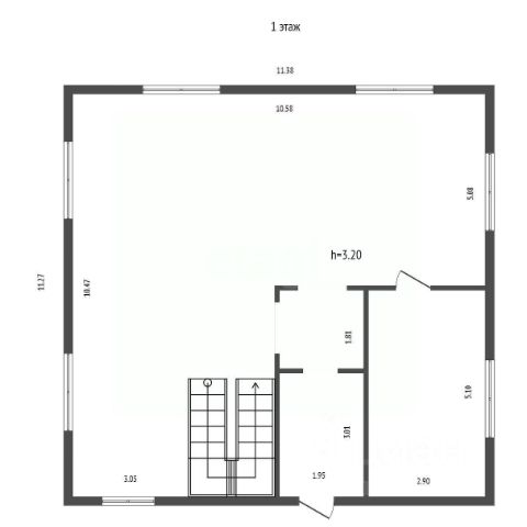 На первом этаже расположились: кухня с выходом на участок, гостевой санузел, просторная комната более 35 кв.м.
