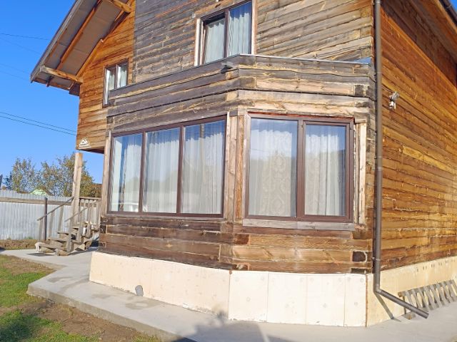 Стены - брус сосновый шлифованный профилированный 20*20 проложен джутом. Первые два венца выложены лиственницей.