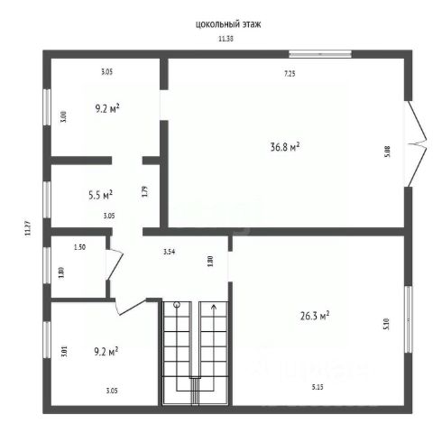 Цоколь, где находится подвал - 53 м² и котельная.