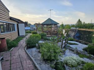 Здесь, на этой даче, сложилось экологичное пространство для отдыха и разнообразной физической активности, благотворно влияющей на здоровье. Дышится на удивление легко в окружении двух огромных сосен, берёз и плодово-ягодных культур (вишня разных сортов, ранетка "Воспитанница", крыжовник, ирга, облепиха, жимолость, слива, рябина и калина, а по периметру участка - малинник).
