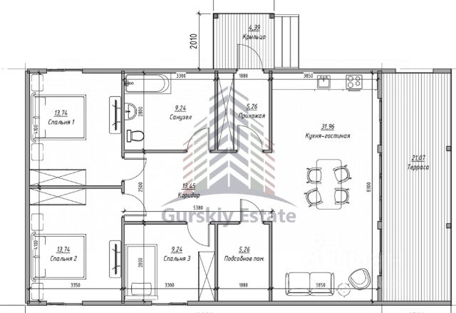 Планировка дома очень удобная для проживания семьёй, поскольку имеет функционал 4 комнатной студии: просторная кухня гостиная более 24 м2, и три большие спальни 12,6-15 м2. В доме имеется вместительная гардеробная, просторный санузел, а также техническое помещения для размещения инженерных систем дома (тепло, электро и пр.) Комфорт проживания добавляют оборудованная терраса 15м2, а также крыльцо 6м2.