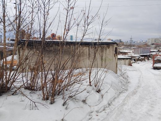 Стены, пол и потолок из железобетона, смотровая яма из кирпича, уложена новая кровля.