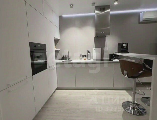 Кухня-гостиная с панорамными окнами (вид на парк 400т-летия, закаты, МВДЦ Сибирь, Взлетку), мини-гостиная с ТВ зоной и полноценным диваном. Отдельно-стоящий остров (в него встроены ПММ, СМА, системы хранения, каменная столешница). Кухонный гарнитур укомплектован всей необходимой техникой. Есть кондиционер.