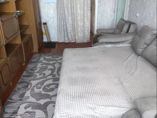 В квартиру можно сразу заселяться жить, покупателю остается встроенная качественная кухня с плитой и духовкой, кран с фильтрацией воды, холодильник, микроволновка, кухонный стол, стулья, раскладной диван, новая качественная кровать с хорошим матрасом, комод, шкаф-купе, дорогие блэкаут шторы, сделано зонирование спальной зоны.