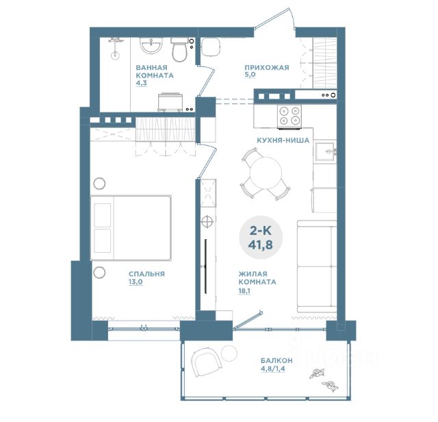 Продаётся 1-комнатная квартира в строящемся доме (Дом 12), срок сдачи: IV-кв. 2027, общей площадью 41.24 кв.м., на 10 этаже. Расположение, транспортная доступность