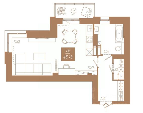 Продаётся 1-комнатная квартира в строящемся доме (Дом 1), срок сдачи: II-кв. 2028, общей площадью 46.15 кв.м., на 21 этаже. Новый жилой комплекс "АйвазовSKY" от группы компаний "Ментал-Плюс" расположен по адресу: г. Красноярск, по ул. 3-я Краснодарская.