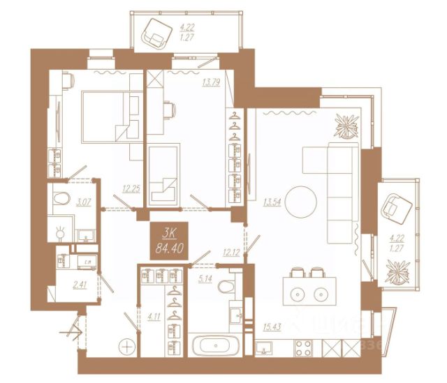 Продаётся 3-комнатная квартира в строящемся доме (Дом 2), срок сдачи: II-кв. 2028, общей площадью 84.4 кв.м., на 19 этаже. Новый жилой комплекс "АйвазовSKY" от группы компаний "Ментал-Плюс" расположен по адресу: г. Красноярск, по ул. 3-я Краснодарская.