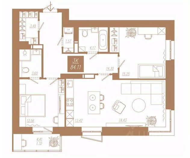 Продаётся 3-комнатная квартира в строящемся доме (Дом 3), срок сдачи: II-кв. 2028, общей площадью 84.11 кв.м., на 14 этаже. Новый жилой комплекс "АйвазовSKY" от группы компаний "Ментал-Плюс" расположен по адресу: г. Красноярск, по ул. 3-я Краснодарская.