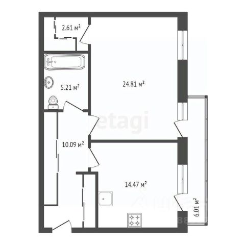 * Полноценная 1-комнатная ( 18,21 кв.м.) , с кухней-гостиной 16,27 кв.м.