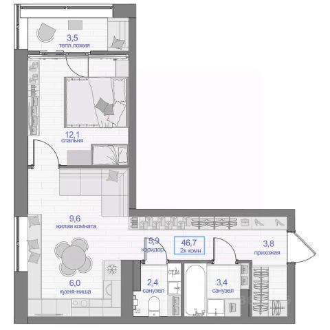 Продаётся 2-комнатная квартира в строящемся доме (Дом 11), срок сдачи: IV-кв. 2026, общей площадью 56.6 кв.м., на 13 этаже. Расположение, транспортная доступность