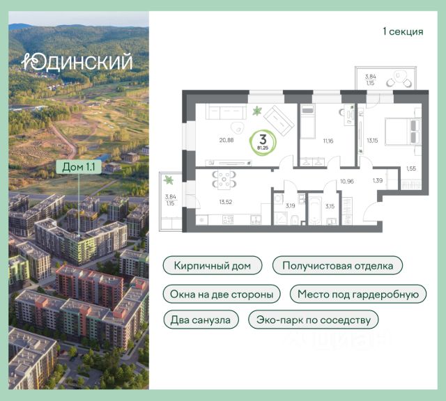 Дополнительные преимущества — шумоизоляция, подготовленные выводы для теплого пола на балконе и скрытый доступ к счетчикам. Объект полностью укомплектован мебелью, включая диван и распашные-шкафы на заказ, и готов к заселению.