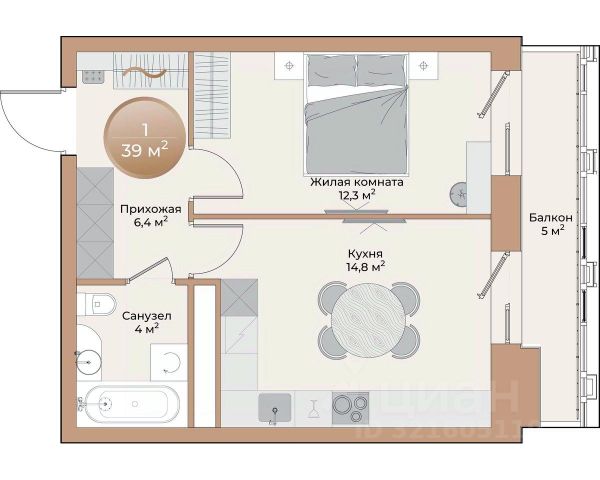 Функциональная планировка: Квартира продумана до мелочей. В ней есть место под зоны гардероба, просторный санузел, вместительный балкон. В комнатах и коридоре вместительные встроенные шкафы и системы хранения, что позволяет рационально использовать пространство.