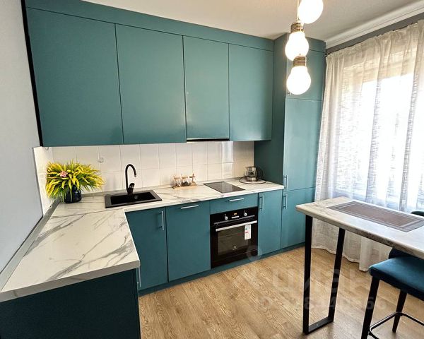 Кухня полностью оборудована современной техникой и красивой мебелью, что делает ее идеальным местом для кулинарных экспериментов.