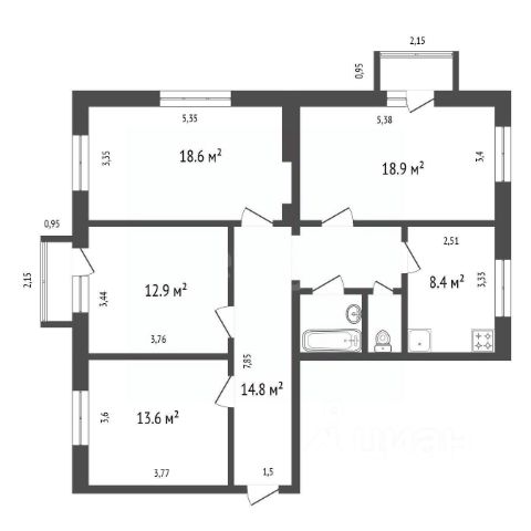 Санузел раздельный, что добавляет комфорта в повседневное использование жилья.