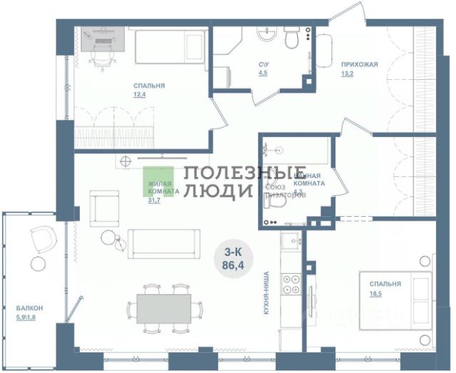 86,7 м² свободы в развивающемся районе: Ваша семейная гавань. Представьте: уютная прихожая 13,2 кв.м, которая встречает вас простором, а не теснотой коридоров. Пройдите дальше — и перед вами откроется светлая кухня-гостиная 31,7 кв.м с двумя огромными окнами. Это сердце дома, где поместится и большой обеденный стол, и мягкая зона отдыха. А за стеклом — застекленный балкон 5,9 кв.м с панорамным французским окном, откуда не хочется уходить. Отдельный мир — мастер-спальня 18,3 кв.м. Это не просто комната: здесь есть своя гардеробная (забудьте о шкафах в прихожей) и отдельный санузел. Настоящие личные апартаменты для главы семьи. Вторая спальня на 12,4 кв.м идеально подойдет для ребенка или гостей. Ремонт выполнен в формате "белый куб" — идеальное чистое полотно для вашего дизайна. Не нужно тратить силы на демонтаж, просто заезжайте и творите. Важное преимущество: подходит под семейную ипотеку под 6%. Это отличный шанс купить квартиру с такими метрами без переплат. Арт. 134517736