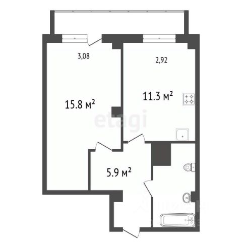 Квартира правильной геометрической формы, зонирована на комнату и кухню