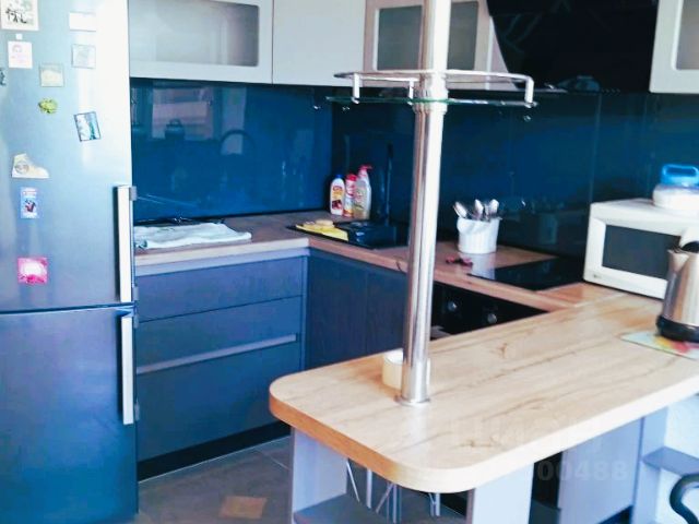 Кухня-гостиная с панорамными окнами (вид на парк 400т-летия, закаты, МВДЦ Сибирь, Взлетку), мини-гостиная с ТВ зоной и полноценным диваном. Отдельно-стоящий остров (в него встроены ПММ, СМА, системы хранения, каменная столешница). Кухонный гарнитур укомплектован всей необходимой техникой. Есть кондиционер.