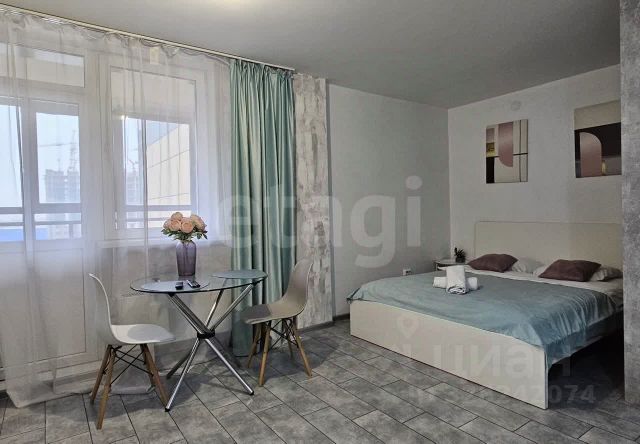 Кухня-гостиная с панорамными окнами (вид на парк 400т-летия, закаты, МВДЦ Сибирь, Взлетку), мини-гостиная с ТВ зоной и полноценным диваном. Отдельно-стоящий остров (в него встроены ПММ, СМА, системы хранения, каменная столешница). Кухонный гарнитур укомплектован всей необходимой техникой. Есть кондиционер.