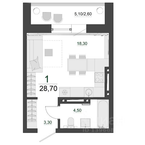 Квартира полностью готова к проживанию благодаря качественному евроремонту. В студии есть все необходимое для комфортной жизни: современная мебель и техника, компактная, но функциональная кухня. Санузел совмещённый и оснащён всей необходимой сантехникой.