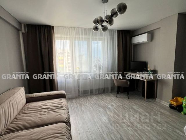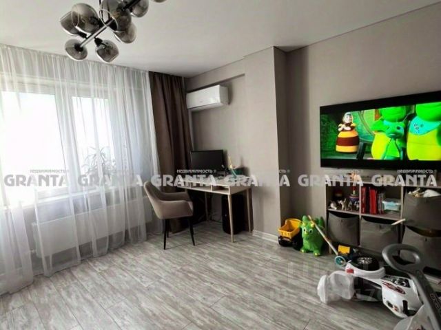 В квартире заливные полы, положен ламинат, в ванной и кухне антивандальный кварц-венил, на кухне на стенах декоративная штукатурка с элементами деревянной рейки, площадь кухни увеличена за счёт большой утеплённый лоджии с тёплыми электро полами и качественными стеклопакетами. В гостиной свежий теневой натяжной потолок с подсветкой, в спальне ремонт делали полгода назад, актуальный теневой потолок с подсветкой над гардиной.