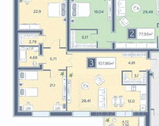 Две изолированные комнаты — для личного пространства каждого. Кухня площадью более 10 квадратных метров— для семейных завтраков и шумных посиделок с друзьями. А санузел с настоящим окном, как в тех самых сталинских домах, где каждая деталь дышит уютом. В спальне и прихожей — вместительные встроенные шкафы. Никакой лишней мебели, только воздух и свобода. А окна здесь особенные: в спальне — панорамное, в гостиной — витражный балкон, куда так хочется выйти с чашкой кофе и посмотреть на звёзды.