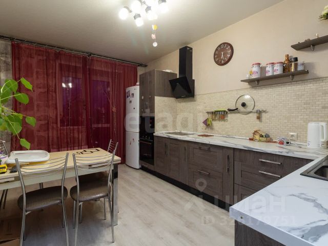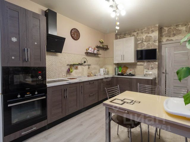 - В кухне установлен кухонный гарнитур, духовой шкаф, варочная поверхность, вытяжка, холодильник, микроволновая печь, посудомоечная машина.