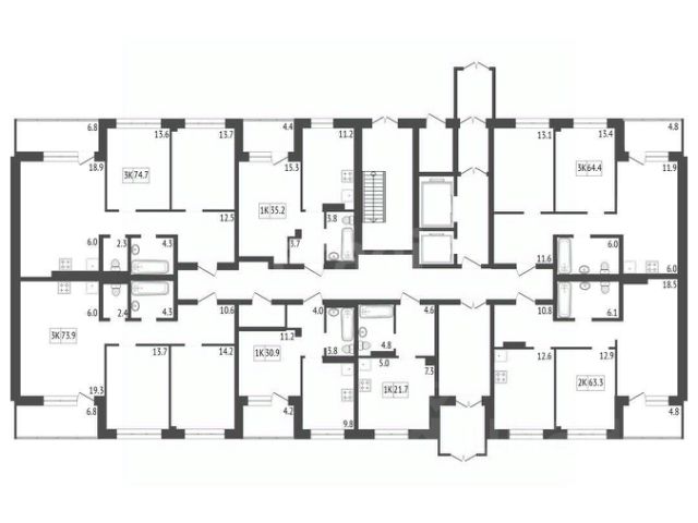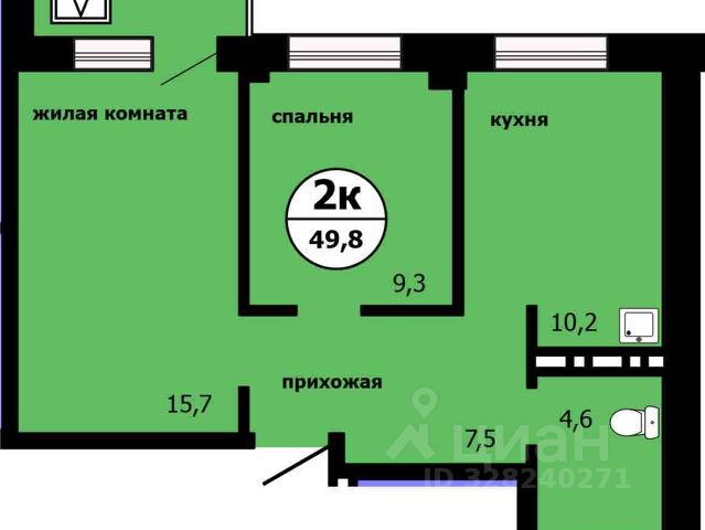 Квартира площадью 45,8 кв. м