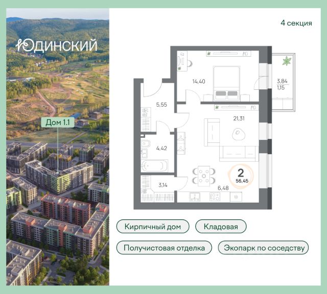 4-комнатная квартира, 100.25кв.м., 2 этаж Новый микрорайон комфорт-класса в западной части Ветлужанки в Красноярске. В шаговой доступности уже строится гольф-поле и эко-парк Юдинская долина - новое место притяжения красноярцев. В ЖК предусмотрены кирпичные дома переменной этажности. Первый дом комплекса состоит из 5 секций с этажностью в 6-8 этажей. Квартирография предусматривает 1-4-комнатные квартиры площадью от 37 до 102 м². id#19636