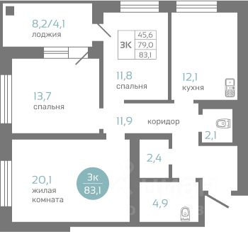 Продаётся 3-комнатная квартира в строящемся доме (Маэстро), срок сдачи: IV-кв. 2026, общей площадью 82.9 кв.м., на 8 этаже. Новый жилой комплекс "Маэстро" от группы компаний "СТМ" расположен по адресу: г. Красноярск, по ул. Авиаторов.