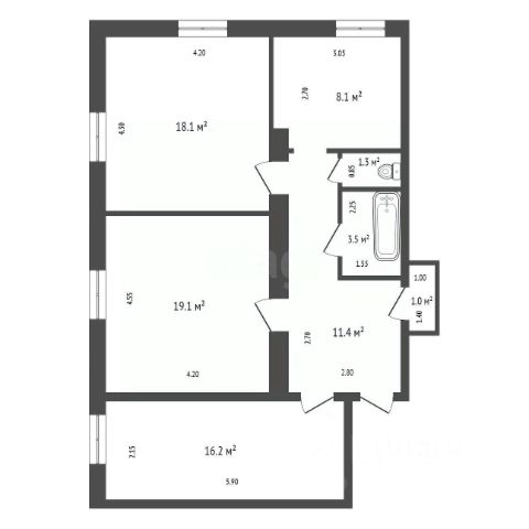 • ✅ Объект наибольшей площади: 80,1 м²