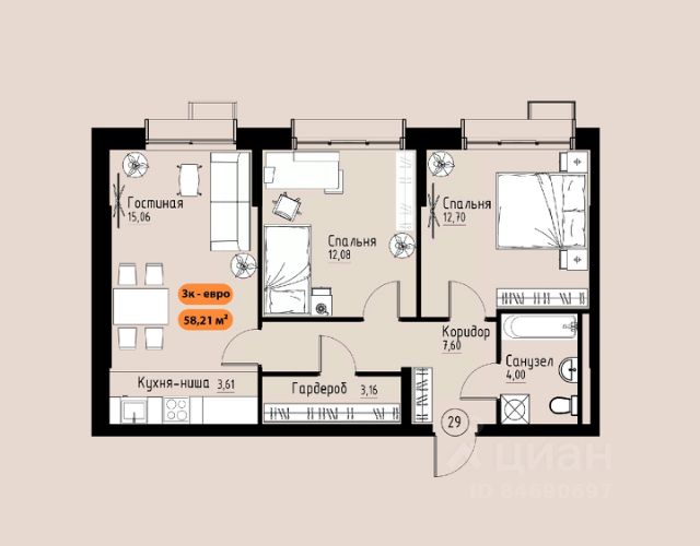 Продаётся 2-комнатная квартира в строящемся доме (Премьер парк), срок сдачи: III-кв. 2029, общей площадью 41.24 кв.м., на 3 этаже. Жилой комплекс "Премьер Парк" расположен в живописном микрорайоне Тихие Зори города Красноярска, неподалеку от реки Енисей и знаменитого железнодорожного моста, удостоенного гран-при наравне с Эйфелевой башней. Вблизи комплекса находятся такие достопримечательности, как фан-парк "Бобровый Лог", заповедник "Столбы" и река Базаиха с её живописной поймой. Чтобы провести время на природе понадобиться потратить всего несколько минут на дорогу. Преимущества близкого расположения к заповеднику "Столбы" и фан-парку "Бобровый Лог" делают "Премьер Парк" идеальным выбором для тех, кто ценит активный и здоровый образ жизни, природу и удобства современной инфраструктуры. Жители могут легко сочетать городской комфорт с активным отдыхом на природе, наслаждаясь лучшими из обоих миров. Развитая транспортная инфраструктура позволяет добраться до центра города всего за 10 минут. Кроме того, рядом расположен спортивно-зрелищный центр "Платинум Арена", принимающий большое количество развлекательных и спортивных мероприятий различного масштаба. Около 2000 тысяч квадратных метров займёт ритейл с нежилыми помещениями , в которых разместяться магазины, кафе, рестораны, кофейни.Что избавит жителей жилого комплекса от необходимости лишний покидать территорию своего дома. Первая очередь строительства жилого комплекса "Премьер Парк" ознаменует начало создания нового уникального микрорайона с современной архитектурой и особым подходом к комфортному и гармоничному проживанию. Одной из архитектурных особенностей комплекса станет дом, построенный на стилобате, на котором будет размещено благоустройство. Архитектурным акцентом станет арка, соединяющая секции дома между собой. Квартиры с просторными террасами на верхних и первых этажах обеспечат отличное времяпрепровождение для всей семьи, а также будут доступны террасы общего пользования, которые будут располагаться на переходных секциях, 7 этажах. Вообразите себе уютное утро, когда вы выходите на просторную террасу с чашкой горячего кофе. С высоты открывается захватывающий вид на могущественный Енисей, железнодорожный мост и живописные окрестности. Вечером терраса становится идеальным местом для отдыха с семьей или друзьями. Здесь можно наслаждаться живописными закатами, которые окрашивают небо в невероятные оттенки оранжевого и розового, создавая атмосферу уюта и спокойствия. Для всех жителей комплекса предусмтрен бесплатный фитнес-зал, что позволит поддерживать здоровый образ жизни и укреплять здоровье, не покидая пределы жилого комплекса. Входные группы ЖК "Премьер парк" два общих входа для жителей всего дома , в которых будут располагаться детские игровые комнаты, зоны отдыха для деловых переговоров и соседких бесед. Дополнительно вход в подъезд предусмотрен в каждой жилой секции, в которых предусмотрены комнаты для хранения велосипедов и колясок. Благодаря подземной парковке, наземн