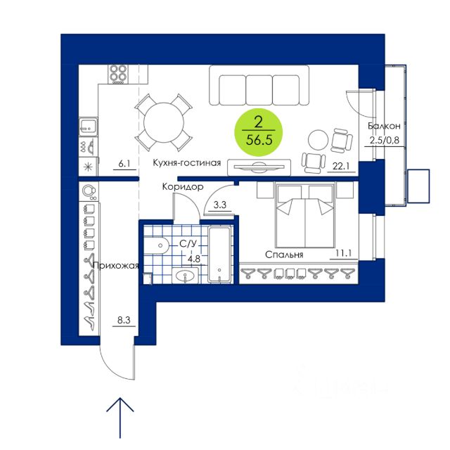 Продаётся 2-комнатная квартира в строящемся доме (1 этап), срок сдачи: IV-кв. 2027, общей площадью 56.5 кв.м., на 8 этаже. Новый жилой комплекс "Вита парк" от застройщика "ГСК Арбан" расположен по адресу: г. Красноярск, улица Елены Стасовой.