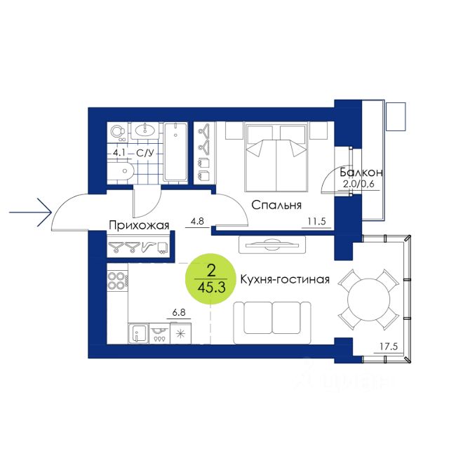 Продаётся 2-комнатная квартира в строящемся доме (1 этап), срок сдачи: IV-кв. 2027, общей площадью 45.4 кв.м., на 2 этаже. Новый жилой комплекс "Вита парк" от застройщика "ГСК Арбан" расположен по адресу: г. Красноярск, улица Елены Стасовой.