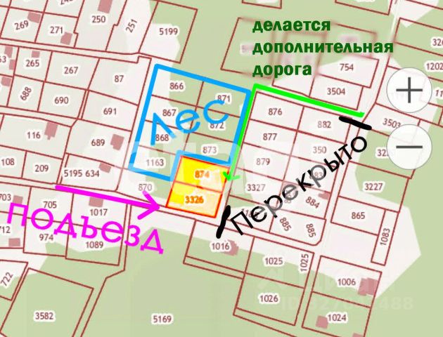 Есть нижняя часть участка прилегающая к СНТ Чернобыль, (там площадка без леса около 2га, вдоль неё там слева по краю начинали когда-то делать дорогу, по карте со спутника видно).