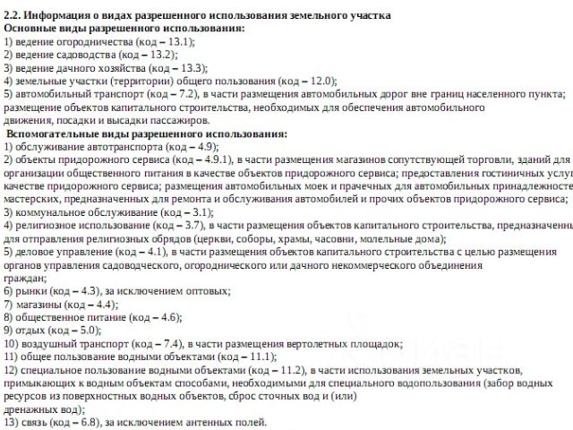 Участок в СНТ "Родничок" в Солонцах рядом с мкр. Чистые Пруды (ул. Ручейная, 502) общей площадью 22 сотки. номер участка: 24:11:0090105:483. ОПИСАНИЕ Участок двухконтурный: первый размером около 90 на 20 метров, второй через дорогу треугольной формы со стороной 30 метров. Участок с панорамным видом, без построек. КОММУНИКАЦИИ Электричество от Россети Сибирь 380 В 15 кВт. Проезд круглогодичный. Летний водопровод. ДОКУМЕНТЫ Категория земель: земли населённых пунктов. Вид разрешенного использования: для ведения садоводства. На участок имеется свидетельство о собственности, выполнено межевание, получен градостроительный план. ПЛЮСЫ - Расстояние до асфальтовой дороги 250 метров, нет шума и выхлопных газов от транспорта. - В отличие от большинства рядом расположенных земельных участков не попадает в охранную зону высоковольтной ЛЭП. - Участок с трёх сторон не имеет соседей, т.к. граничит с дорогой, это удобно. ГЛАВНЫЙ ПЛЮС Собственник может без каких-либо согласований по своему желанию выбрать в дополнение в основному виду разрешенного использования вспомогательный вид. Все вспомогательные виды разрешенного использования участка можете посмотреть на первом фото, вот лишь некоторые из них: обслуживание автотранспорта (код - 4.9), объекты придорожного сервиса (код - 4.9.1), рынки (код - 4.3), магазины (код - 4.4). УСЛОВИЯ ПРОДАЖИ Я собственник, могу показать участок на местности и ответить на все вопросы лично.
