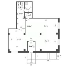 Удобство и доступность: Отдельный вход с пандусом, бесплатная парковка. Свободная планировка (128.5 м², потолки 3.3 м) позволяет легко организовать пространство под ваш формат.