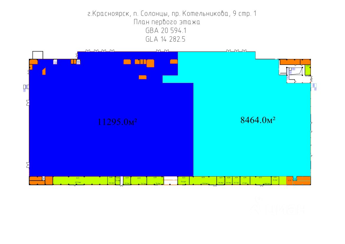 Площадь от 8464кв.м. Возможно снять в аренду весь 1й этаж 19759,0 м2. Высота потолков 3,2-7,5м.
